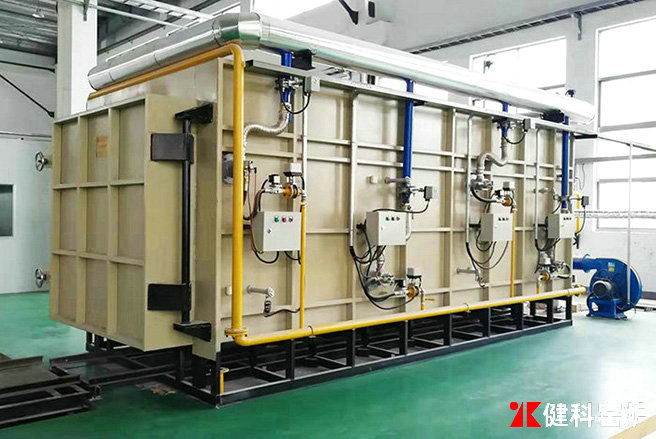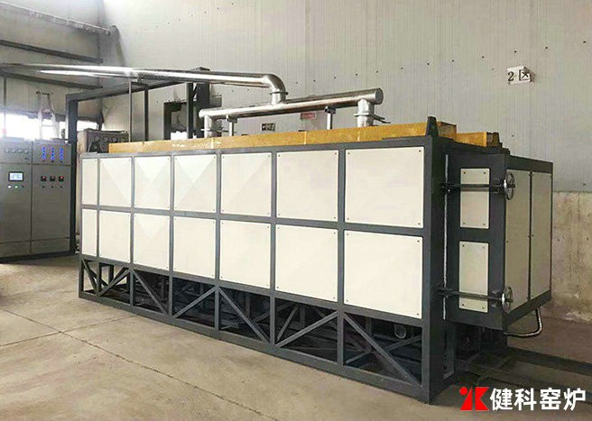 由于窯門經常移動,所以窯門的砌筑為兩層,內層為高強度隔熱磚,外層為隔熱層,采用耐火纖維氈貼于窯門金屬殼上。燒嘴安裝在窯墻上,視窯的高度設一排或兩排。以窯車臺面為窯底并和窯頂、窯墻構成窯的燒成空間,窯車襯磚中 心留設主煙道,與地下煙道相接。窯的一端(或兩端)設有窯門,窯門可單獨設置也可砌筑在窯車端部。窯車兩側裙板插入窯墻砂封槽內,窯車與窯車之間,窯車與端墻、窯門之間設有曲封槽,耐火纖維擠緊,起密封作用。在窯墻砂封槽下部留有許多通風孔,有利于窯車底部散熱,延長了窯車的使用壽命。